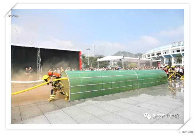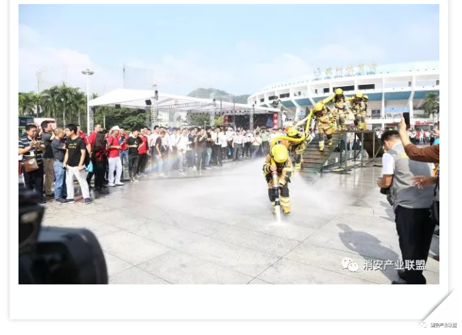 啟動(dòng)儀式現(xiàn)場節(jié)目精彩紛呈,威風(fēng)帥氣的消防士兵們在深圳市體育館廣場進(jìn)行了精彩刺激的消防作戰(zhàn)演練。