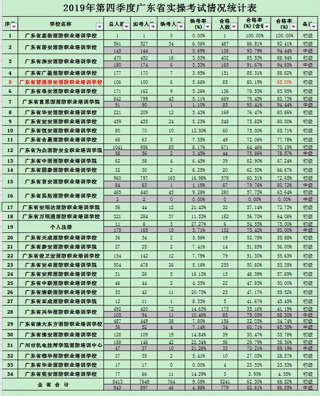 喜訊:我校學員在2019年第四季度廣東省初級實操考試中,通過率在全省33個學校中,深圳區(qū)域排第二名,全省排第五名。