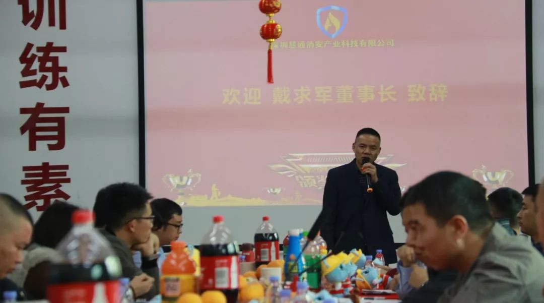 首先,由公司董事長戴求軍先生致辭。戴董指出,在經(jīng)濟(jì)形勢嚴(yán)竣情況下,慧通消安逆流奮進(jìn),一年來,主要大事有:學(xué)校辦學(xué)許可資質(zhì)增加中級(jí)消防系統(tǒng)操作員培訓(xùn);慧通消安消防安全綜合教育基地在2019年入選“深圳市安全教育基地示范場館”,先后被光明區(qū)消安委和市消安委授予“深圳市光明區(qū)消防科普教育基地”和“深圳市消防科普教育基地”;公司被市消安委授予2019年深圳市“熱心消防公益事業(yè)先進(jìn)集體”;公司受邀參加第21屆高交會(huì)應(yīng)急安全科技展和中國消防協(xié)會(huì)年會(huì)暨2019年科學(xué)技術(shù)年會(huì);成功舉辦了光明區(qū)及鳳凰街道“119”消防宣傳月啟動(dòng)儀式、光明區(qū)首屆“消防安全公益文化節(jié)”;承攬大浪街道出租屋消防設(shè)施改造、公明街道消防安全文化示范街和公明街道消防主題體驗(yàn)館;消防工程也取得了可喜的成績等。
