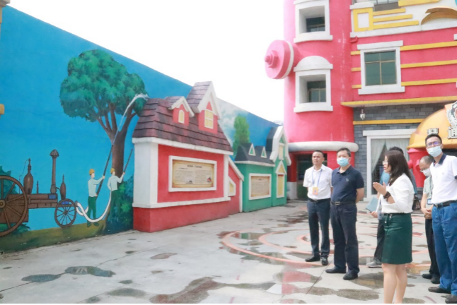 視察組一行對基地文化廣場的建筑設計風格和教學功能表示高度贊許,認為這種“安全迪士尼”文化特色能夠寓教于樂,更利于向廣大普通民眾傳播和普及消防安全知識,提升消防安全意識。