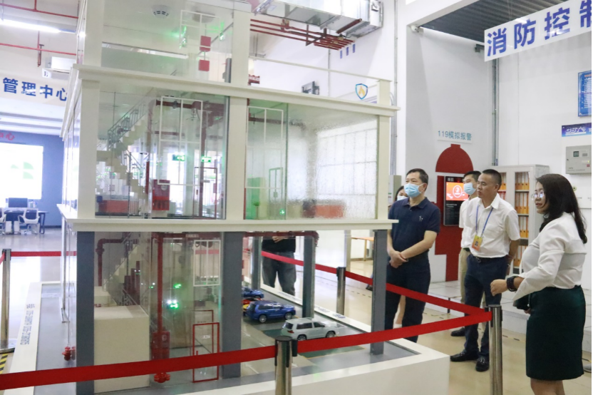 在聽取基地工作人員對具有自主知識產(chǎn)權的“高層建筑消防設施原理教學模型”、“智慧家庭消防應急寶”、“消防安全運維平臺”等進行講解時,項健副主席給予了充分肯定,并鼓勵基地根據(jù)市場和客戶需求繼續(xù)開發(fā)出更多實用的自主知識產(chǎn)權產(chǎn)品。