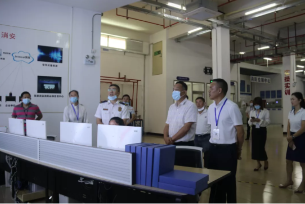考察組參觀高層建筑消防系統(tǒng)原理教學(xué)模型