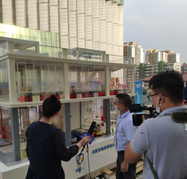 現(xiàn)場(chǎng)多家媒體對(duì)“消防系統(tǒng)全景教學(xué)模型"和“智慧家庭消防應(yīng)急寶”進(jìn)行采訪。