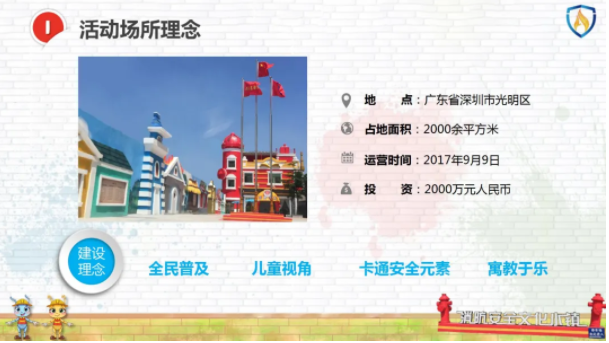 基地旨在基于“全民普及、兒童視角、寓教于樂”的建設(shè)理念,以主題樂園式建筑風(fēng)格及各類安全卡通元素,讓小朋友們在游戲的過程中快樂地學(xué)習(xí)安全知識,并在安全性、益智性、趣味性、友好性等各方面,都充分體現(xiàn)出了獨有的特色。