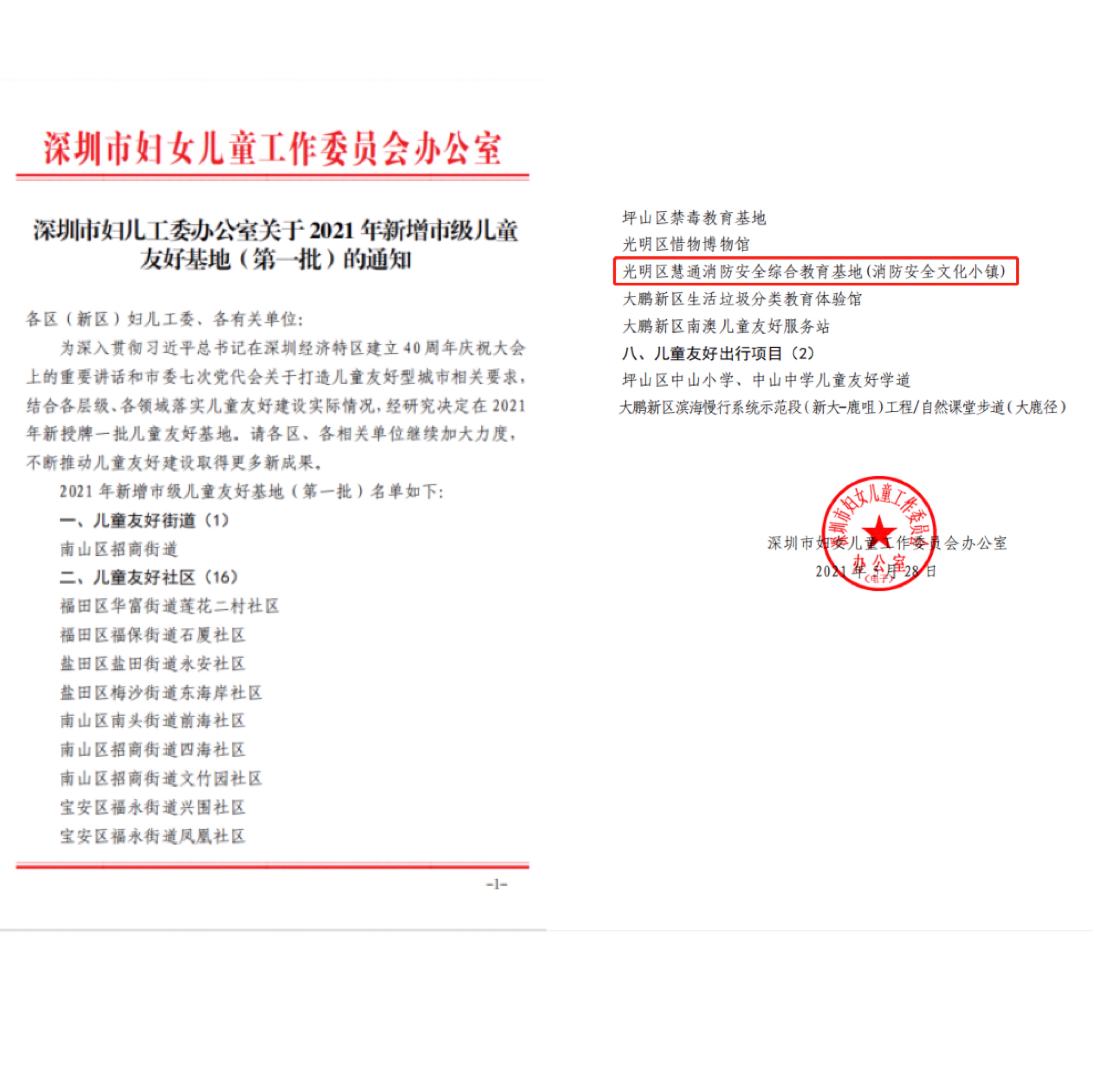 [喜報] 慧通消防安全綜合教育基地(消防安全文化小鎮(zhèn)) 喜提“深圳市兒童友好實踐基地”稱號