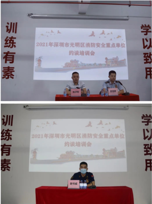 光明區(qū)消防救援大隊副大隊長吳冠霖、執(zhí)法監(jiān)督員謝書威分別出席了開班動員大會,會上提出了消防法律法規(guī)以及結(jié)合近期發(fā)生的火災(zāi)事故案例,強調(diào)了提高安全防范意識的重要性和加強學(xué)習(xí)消防知識的必要性,并圍繞如何提高社會單位火災(zāi)防控能力,落實消防安全主體責(zé)任以及加強消防安全管理工作提出要求:一是各重點單位要嚴(yán)格落實消防安全責(zé)任制,把消防工作責(zé)任制和任務(wù)分解落實到具體崗位和個人,單位負(fù)責(zé)人要成為消防安全“明白人”,承擔(dān)本單位消防安全工作的組織、領(lǐng)導(dǎo)責(zé)任,全力做好特殊時段火災(zāi)防控工作;二是要認(rèn)真做好自查自糾,定期開展防火檢查巡查,落實員工崗位消防責(zé)任;三是要加強值班巡查制度落實。各單位要嚴(yán)格落實防火巡查制度,人員密集場所要在營業(yè)期間每兩小時巡查一次,尤其是夜間營業(yè)的場所,務(wù)必確保疏散通道和安全出口暢通;四是要對本單位場所員工做好消防安全宣傳培訓(xùn),定期組織開展消防演練,各單位的員工必須掌握相關(guān)消防知識和消防器材的使用。