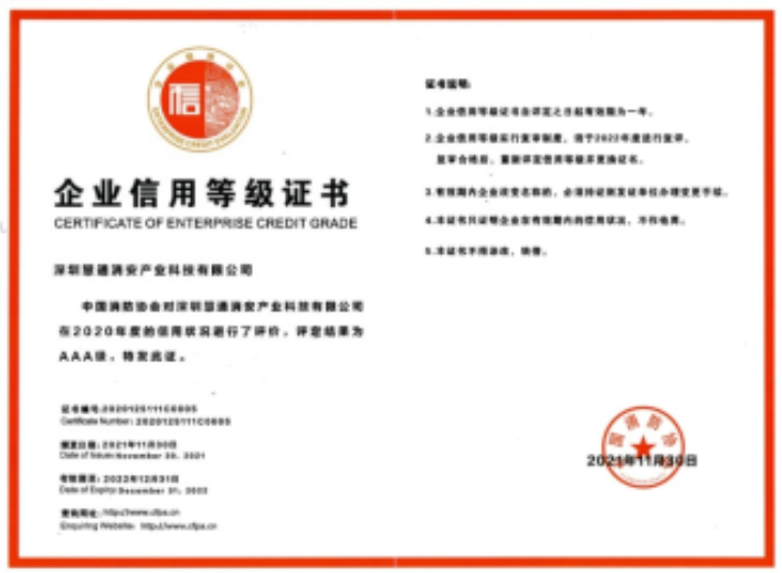 深圳慧通消安產(chǎn)業(yè)科技有限公司在復評企業(yè)名單之列 ,并維持AAA級別。企業(yè)信用等級評價工作是從企業(yè)的品牌建設、技術研發(fā)、質(zhì)量管理、售后服務、信用管理等多個層面進行嚴格考核,AAA級評定結(jié)果是慧通消安誠信履約和餞行社會責任的直觀體現(xiàn)。