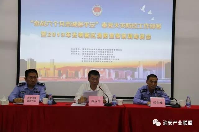 2018年4月26日下午3點,由深圳市公安局光明分局消防監(jiān)督管理大隊主辦的以“奮戰(zhàn)六個月忠誠保平安”為主題《春夏火災(zāi)防控工作部署暨2018年光明新區(qū)消防宣傳教育培訓(xùn)動員會》在光明新區(qū)消防安全綜合教育基地隆重舉行!參加本次動員會的有:深圳市光明新區(qū)黨工委委員、公安局局長楊永平,深圳市公安局光明分局綜合處處長張岳峰,深圳市公安局光明分局消防監(jiān)督管理大隊副大隊長施小石等領(lǐng)導(dǎo),光明新區(qū)各派出所所長、副所長等,以及防火中隊列管的94家消防安全重點單位責(zé)任人與管理人員,共計200余人。2018 / 04 / 27 -